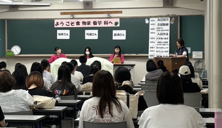 栄養系進路の疑問や不安を解消できるように、在学生にインタビュー形式で話を聞きます。そのあとは、食べ物カードを使ったビンゴゲームで景品をゲット!