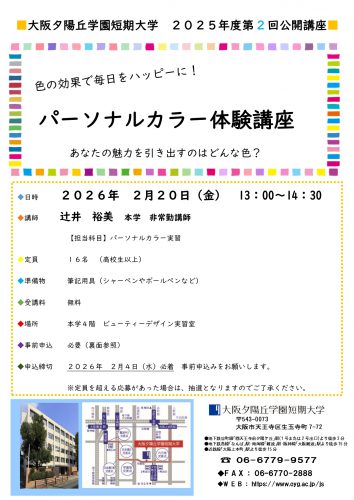 2025年度 第2回公開講座 開催のお知らせ ~色の効果で毎日をハッピーに!パーソナルカラー体験講座~